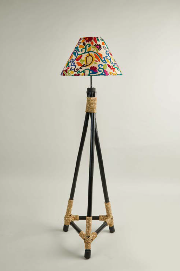 Corner Lamp Shade with Bamboo Stand