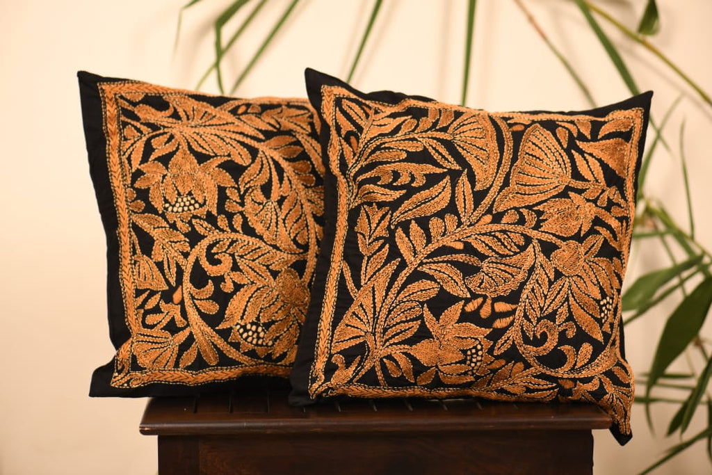 Black & Copper Handcrafted Cushion Covers (Set of 2)
