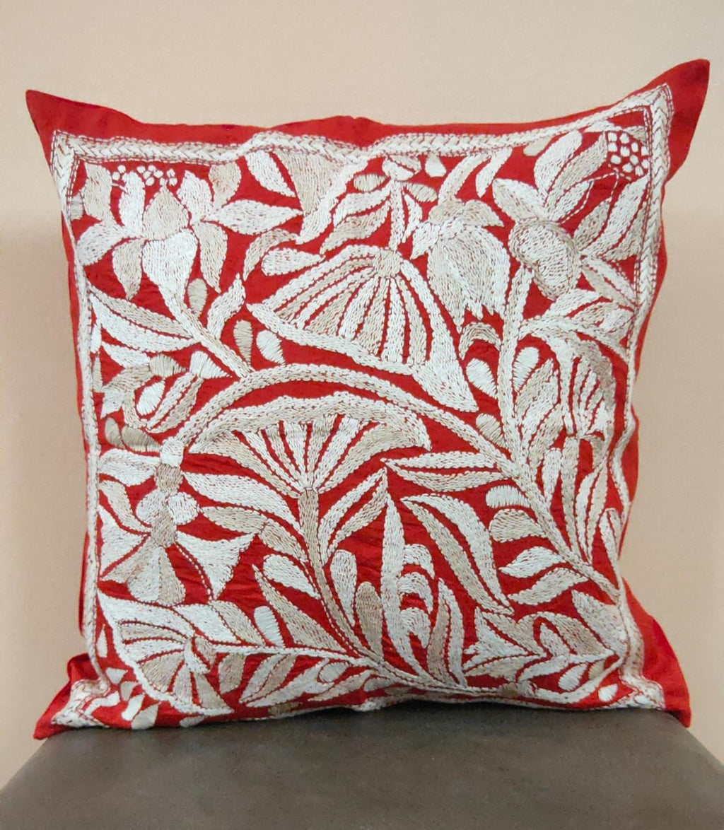 Red with Cream Embroidery Cushion Covers (Set of 2)