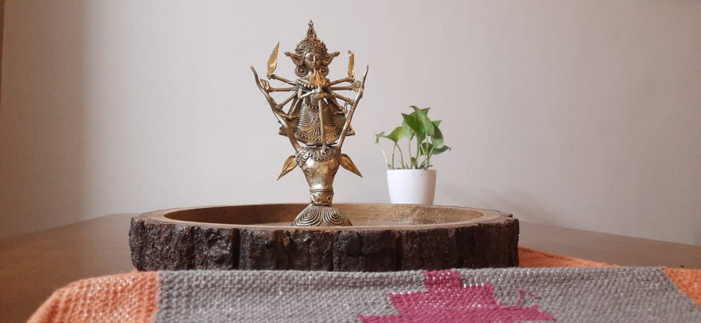 Dokra is an ancient metal casting technique to facilitate the use of brass. Over 4000 years old, Dokra artisans create a motifs from folk lore. The term Dokra has its genesis in the Dokra Damar tribes, the traditional metalsmiths from West Bengal and Odisha.