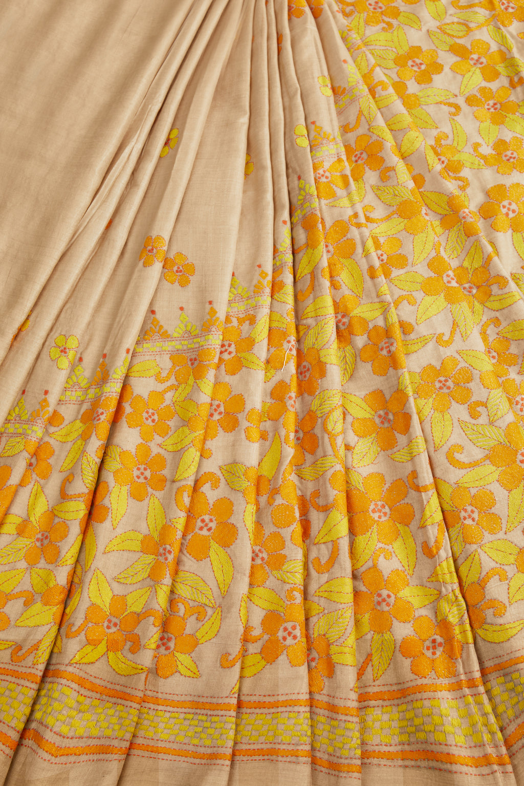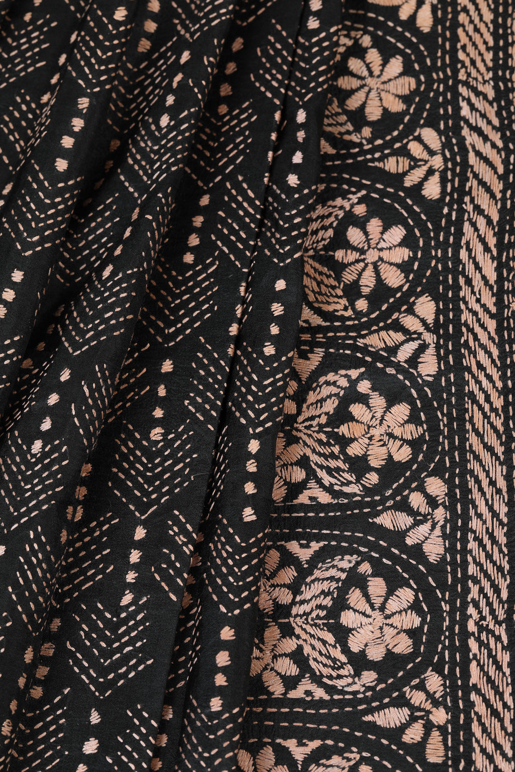 The traditional folk art is one of the oldest forms of embroidery that originated in India. Its origins can be traced back to the ancient pre-Vedic ages. Motifs found in early Kantha embroidery include many symbols that were derived from ancient art. These symbols depict nature, such as the sun, the tree of life and the universe.