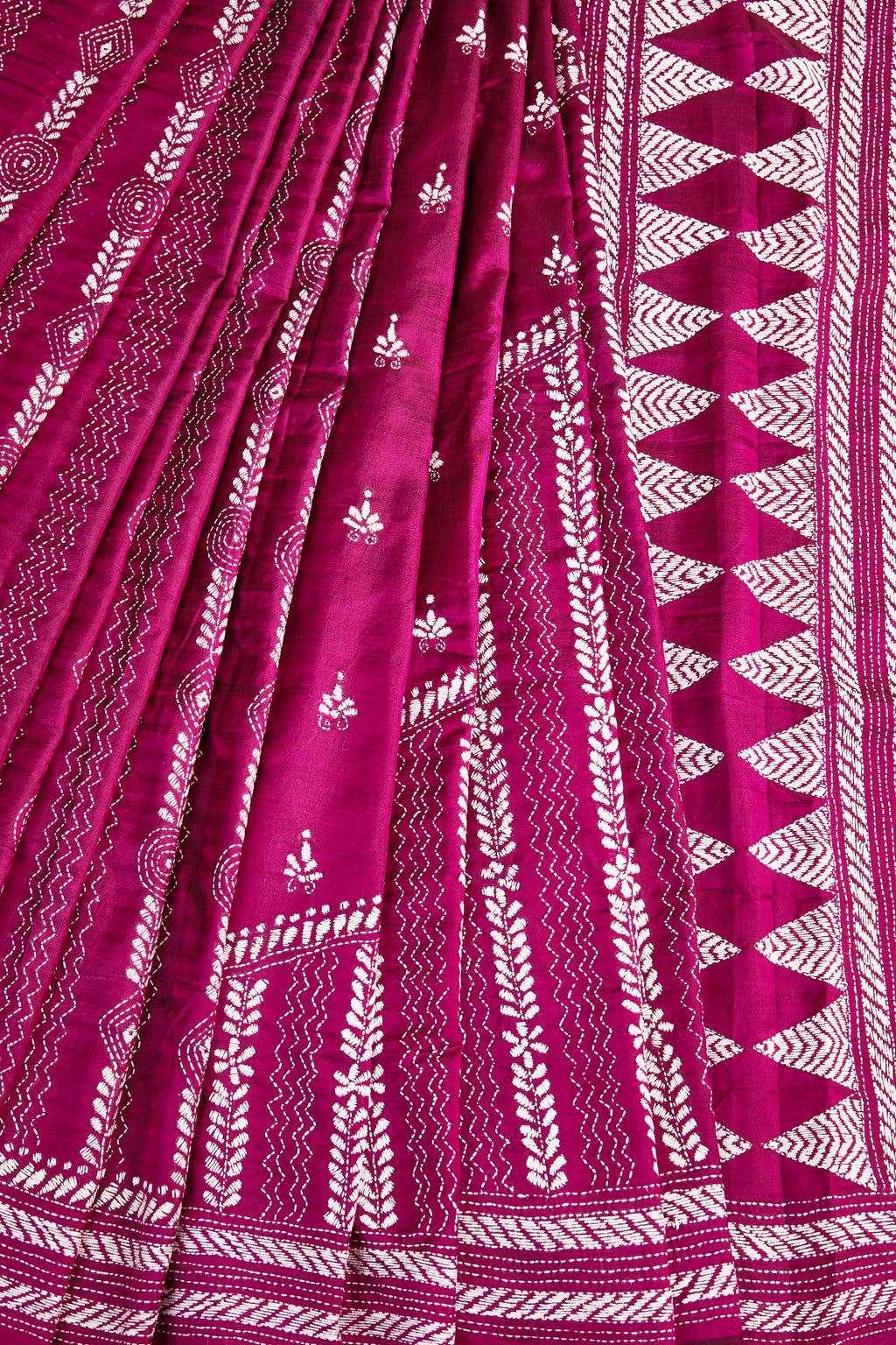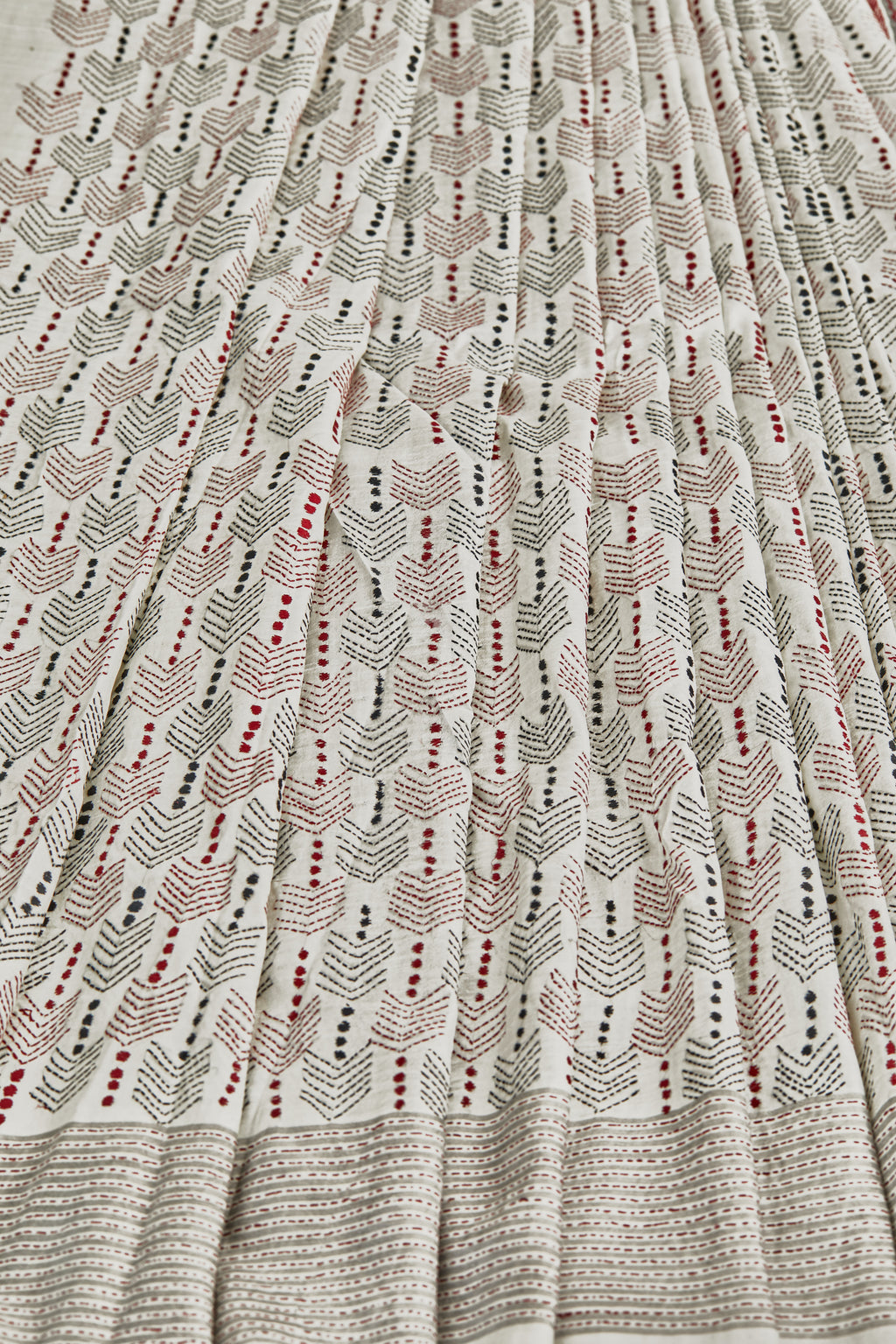 Kantha comprises the simplest stitch in the language of embroidery – the running stitch. It is the way in which this stitch is used, in different arrangements, that forms the complex vocabulary of kantha.