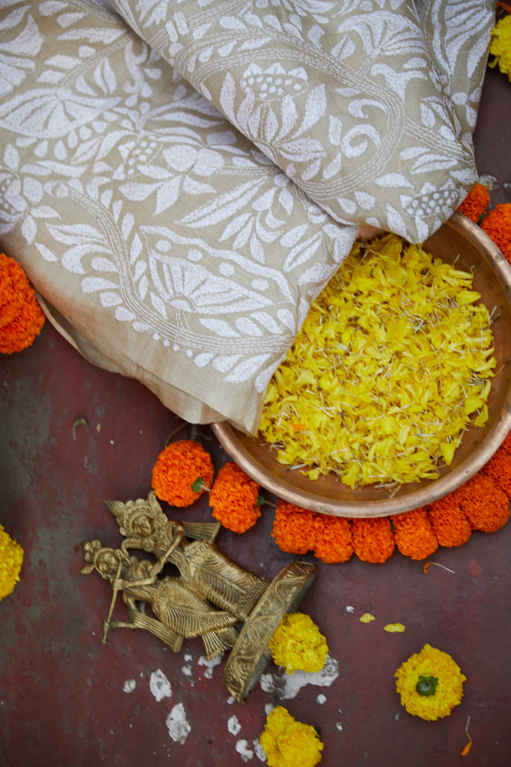 Kantha comprises the simplest stitch in the language of embroidery – the running stitch. It is the way in which this stitch is used, in different arrangements, that forms the complex vocabulary of kantha.